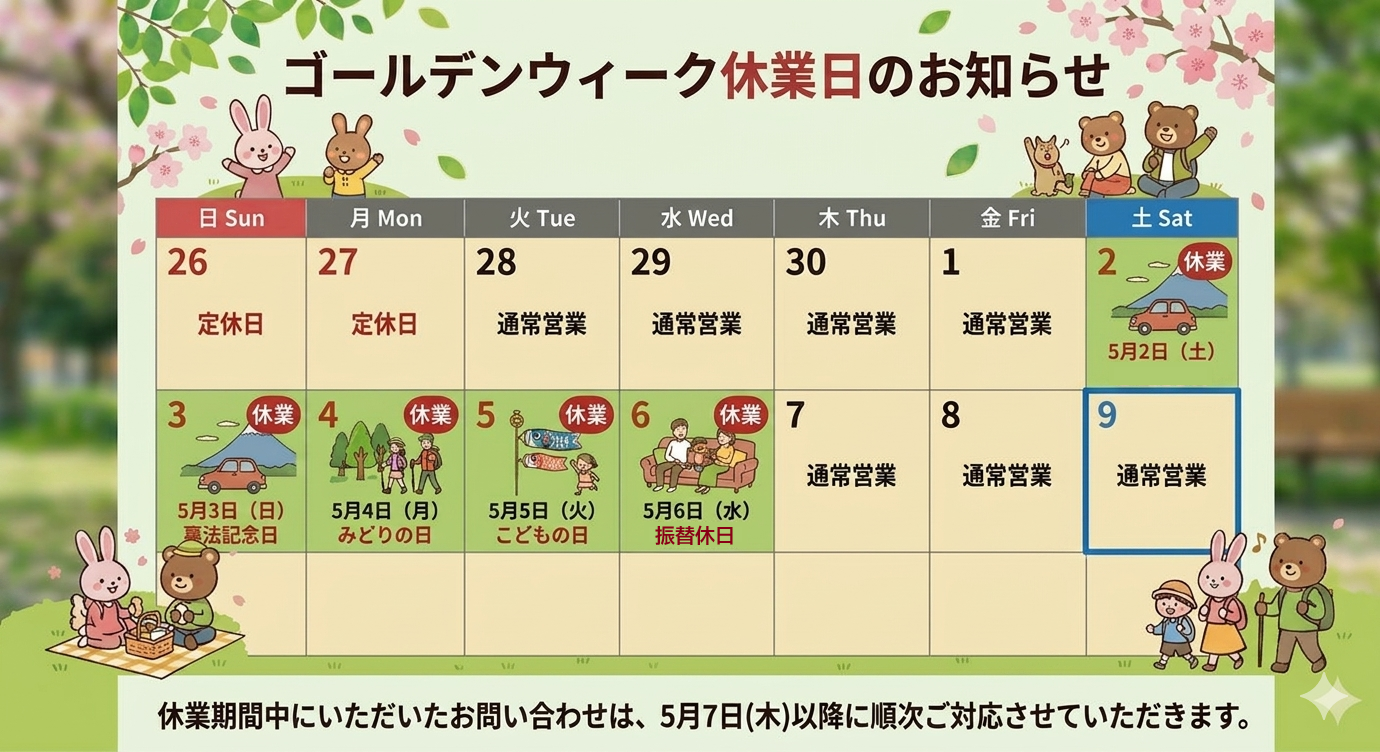 【ゴールデンウィーク休業のお知らせ】